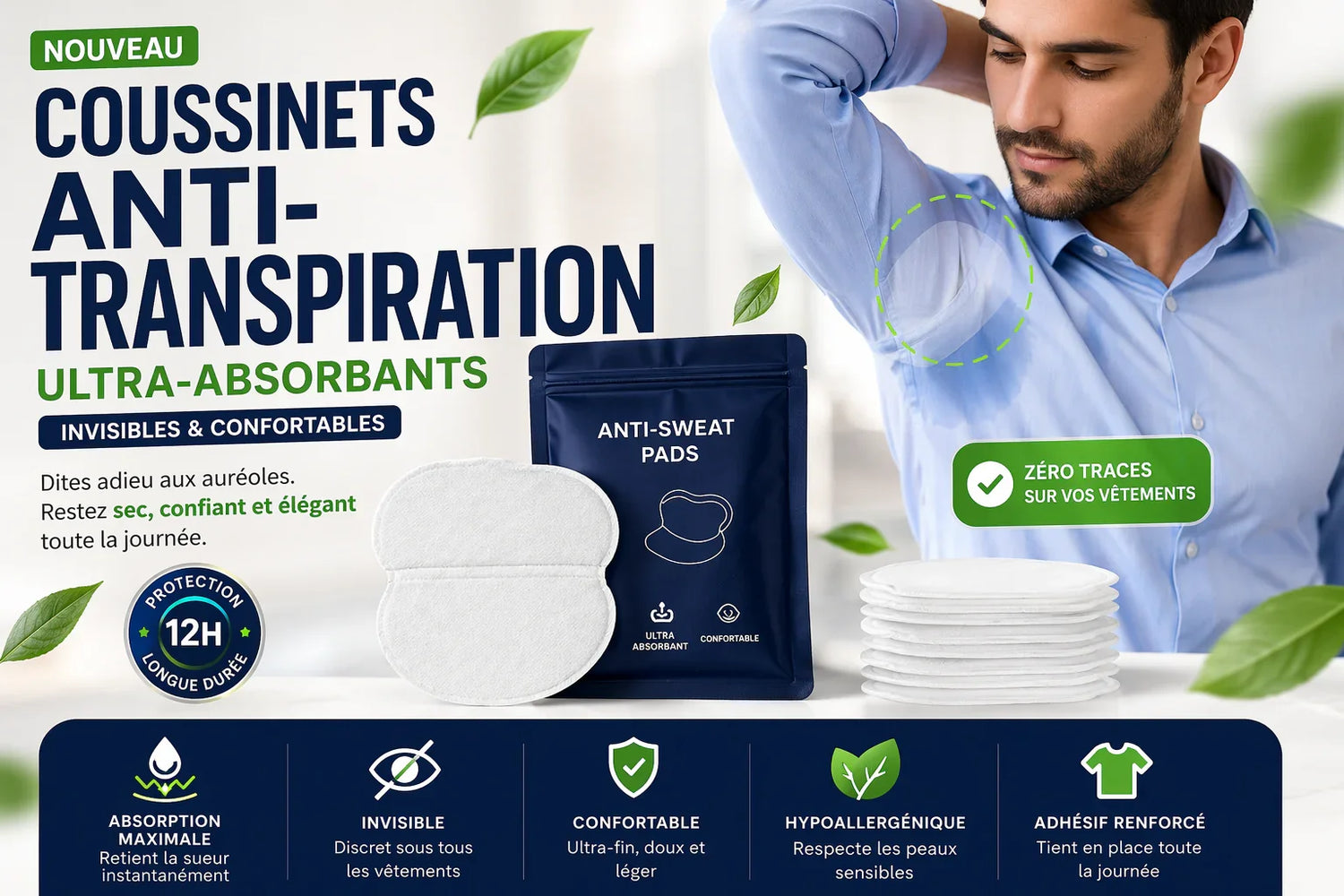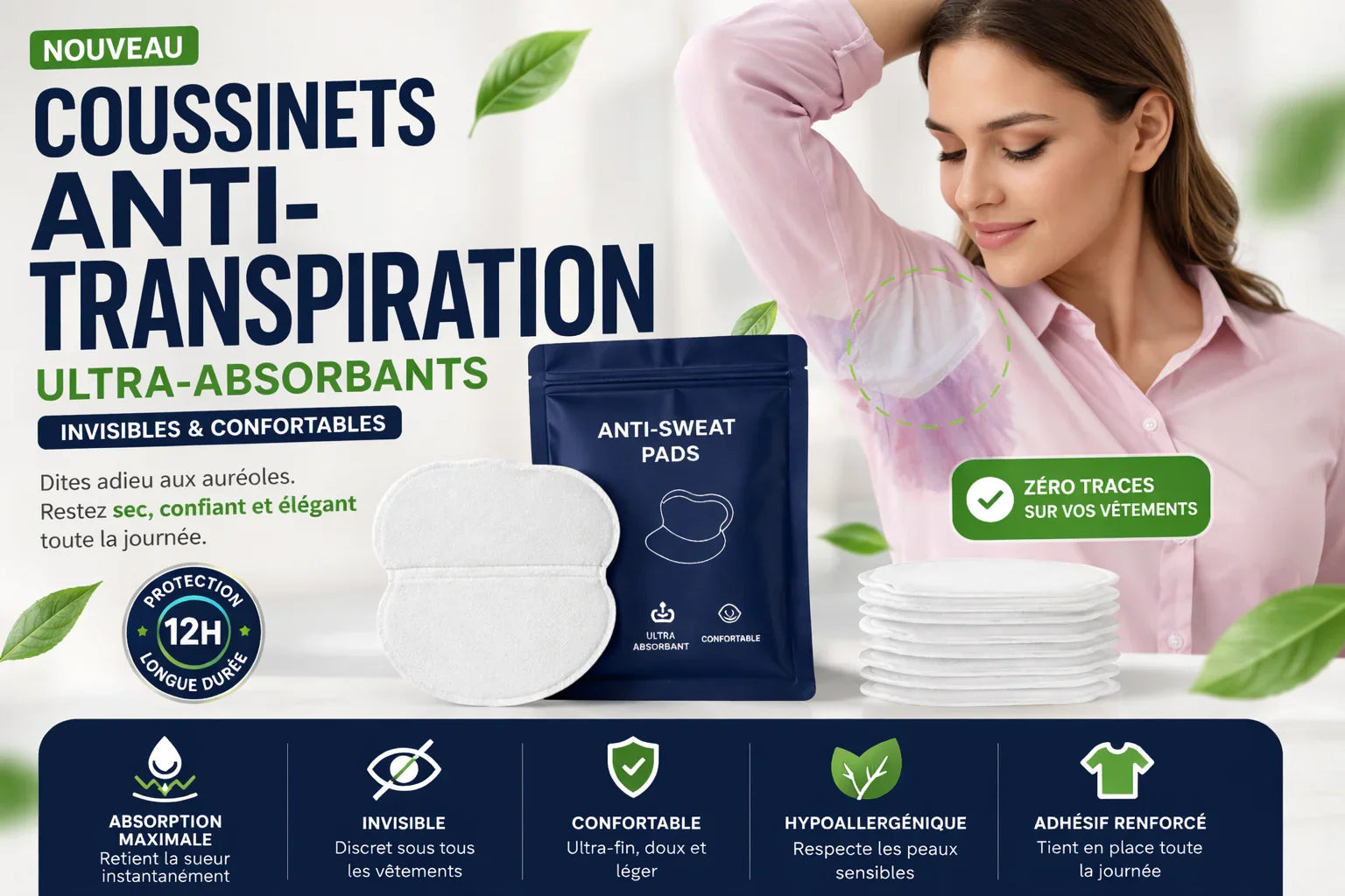 Dites adieu aux auréoles et restez frais toute la journée grâce à nos coussinets anti-transpiration discrets et ultra-performants.